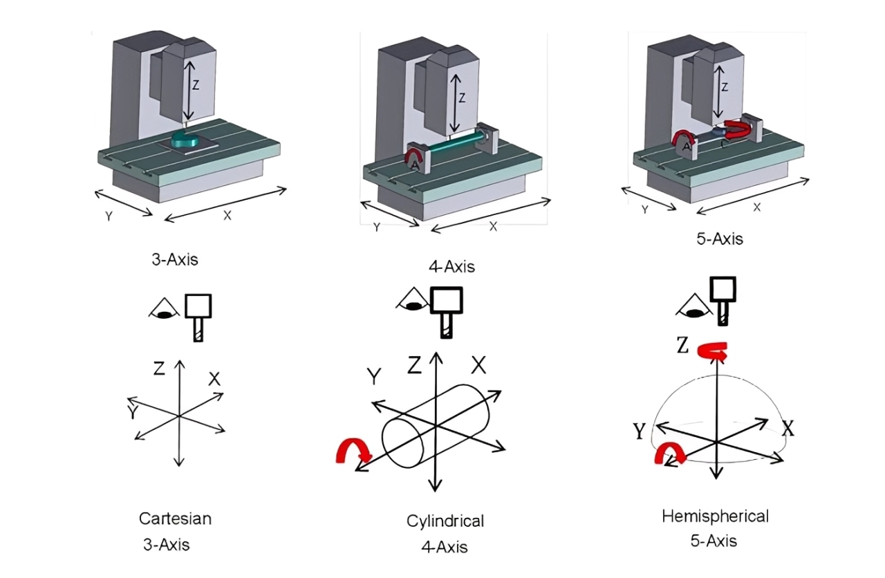 Next comes the most complex 5-axis system, which is the “top-of-the-line” for CNC, but there are two types: