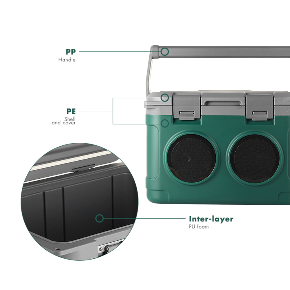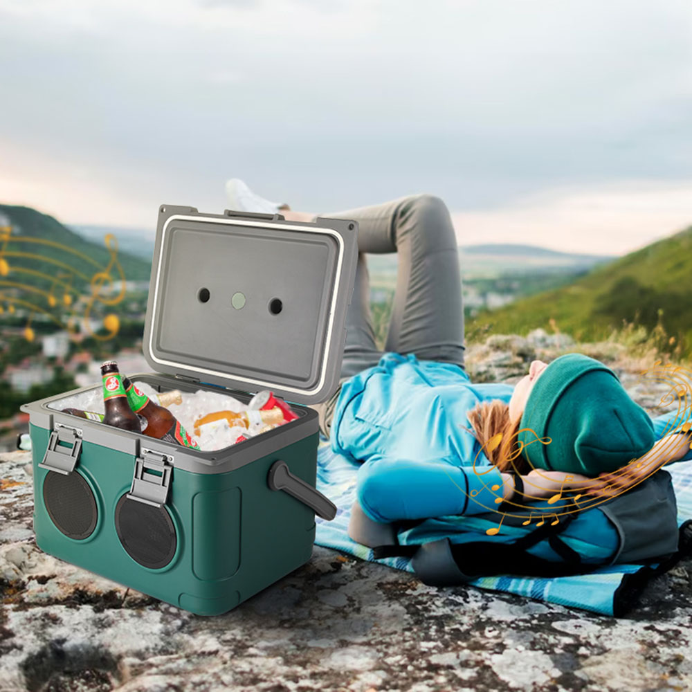 - 22QT Large Capacity+Multifunctional Design: Comes with a Bluetooth speaker, it can hold ice drinks, fruits, and other food and drinks while camping or self driving. It can also play music directly without the need for an additional speaker, allowing one box to handle food, drink, and atmosphere.