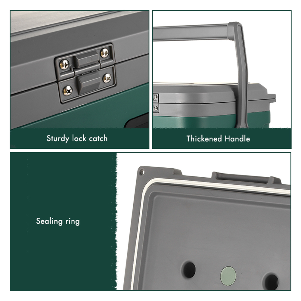 - Detail Oriented and Practical: Hard cooler box is waterproof, so you don’t have to worry about leaking water when you touch it outdoors; The lock buckle is made quite firmly, and the box cover will not loosen when driving, and the contents inside will not shake out.