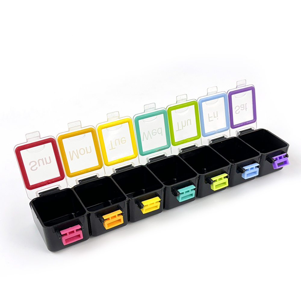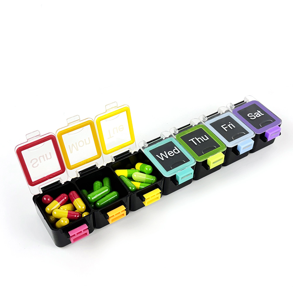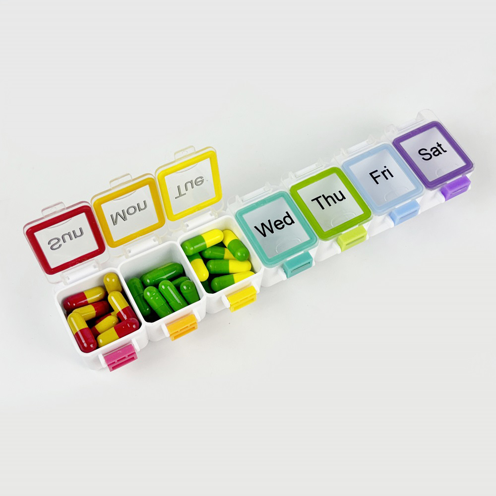 A pill organizer is a small container with single or multiple compartments, typically labeled to sort and manage medication doses in advance. It helps you remember to take the right pills at the right time. And all daily, weekly and monthly ones are small drug classification containers made of food-grade materials, but they differ in design.